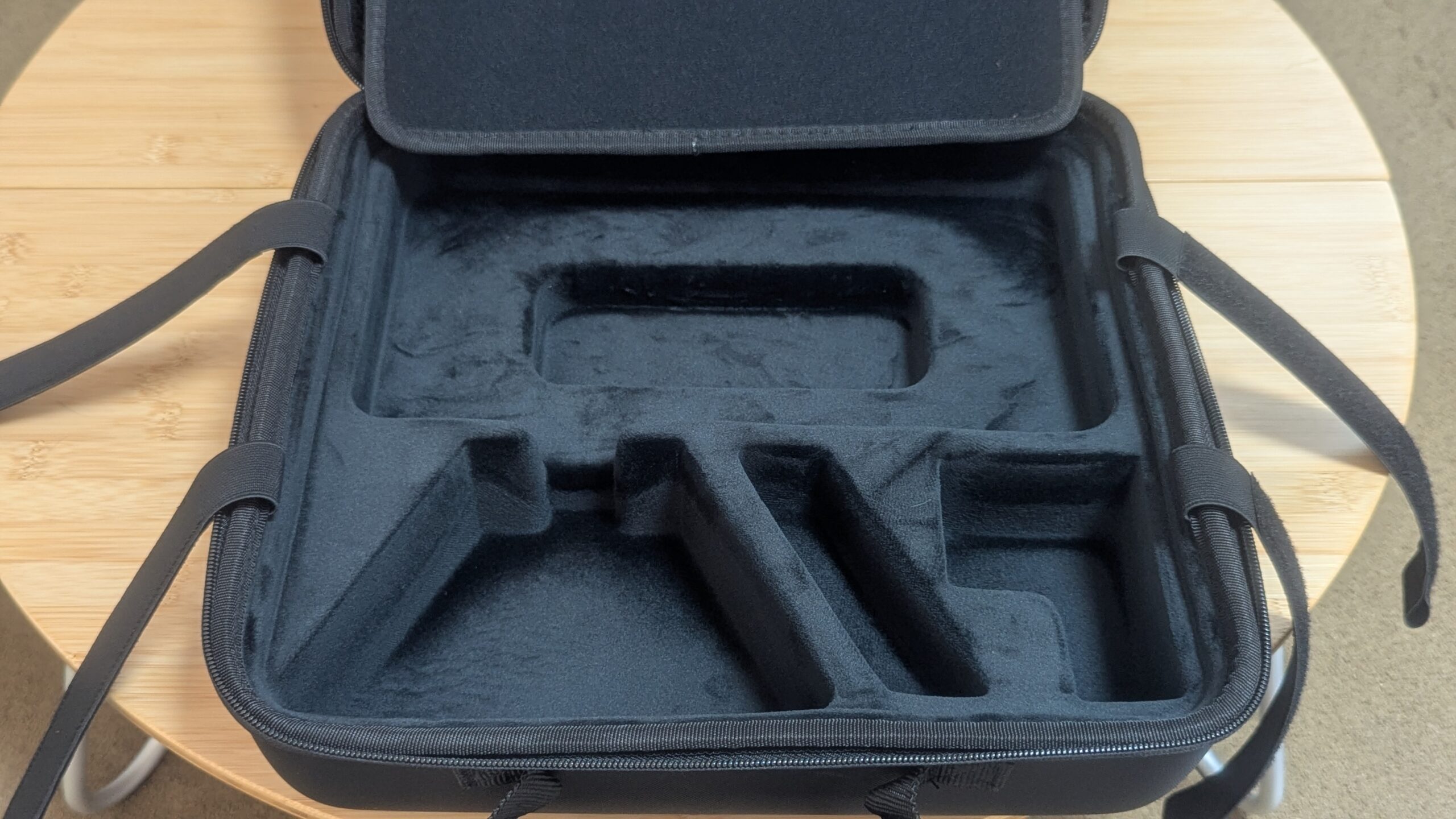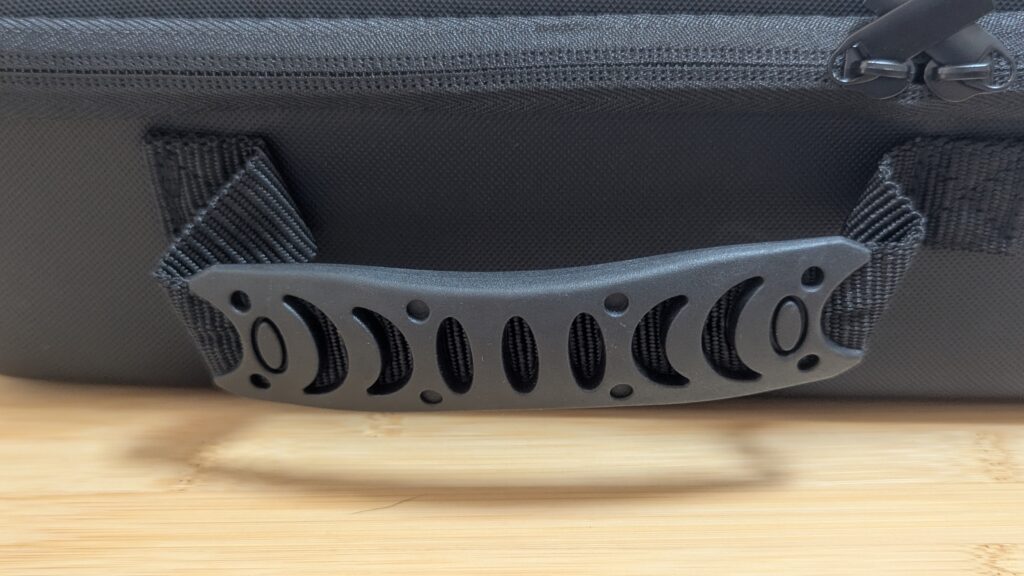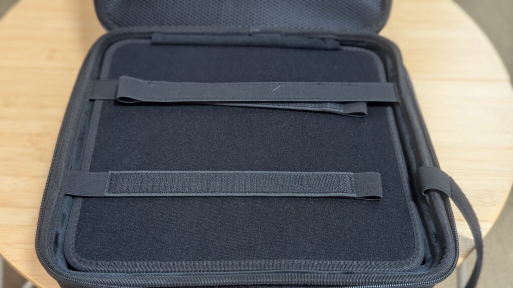 外側はマットなブラックで、アウトドアギアに馴染む落ち着いたデザイン。EVA素材は硬すぎず柔らかすぎず、Starlink Miniをしっかり守ってくれそうな手触りです。